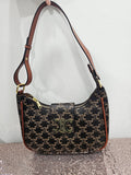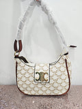 This stylish shoulder bag is inspired by the iconic Celine Ava Bag, known for its distinctive hobo crescent shape and minimalist elegance. The bag features the recognizable Triomphe Monogram pattern on a durable coated canvas-style material.