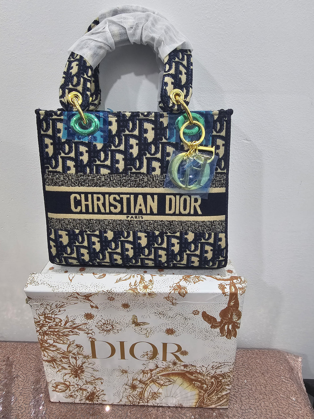 Designer Style Medium Tote Bag in Oblique Canvas with Signature Logo Band