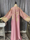 Step into timeless sophistication with the Blush Majesty Embroidered Abaya, a perfect fusion of classic modesty and contemporary elegance. This stunning piece features a soft blush pink base complemented by a cream beige front panel and cuffs, creating a graceful two-tone look.