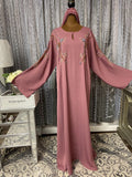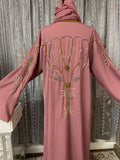 Dusty Rose Beaded Abaya with Intricate Hand Embroidery
