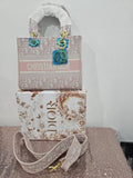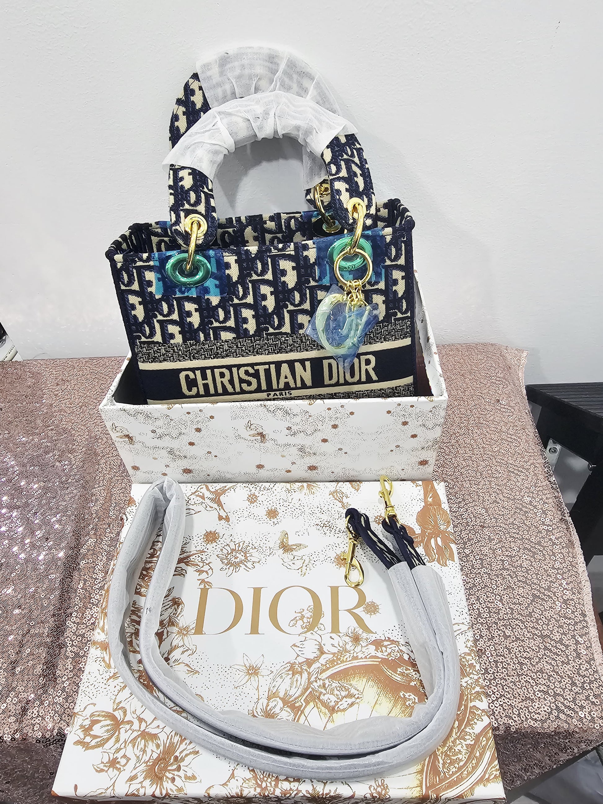 Inspired By: Dior Book Tote (shape, canvas) and Lady Dior (charms).