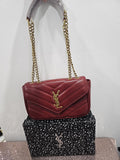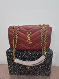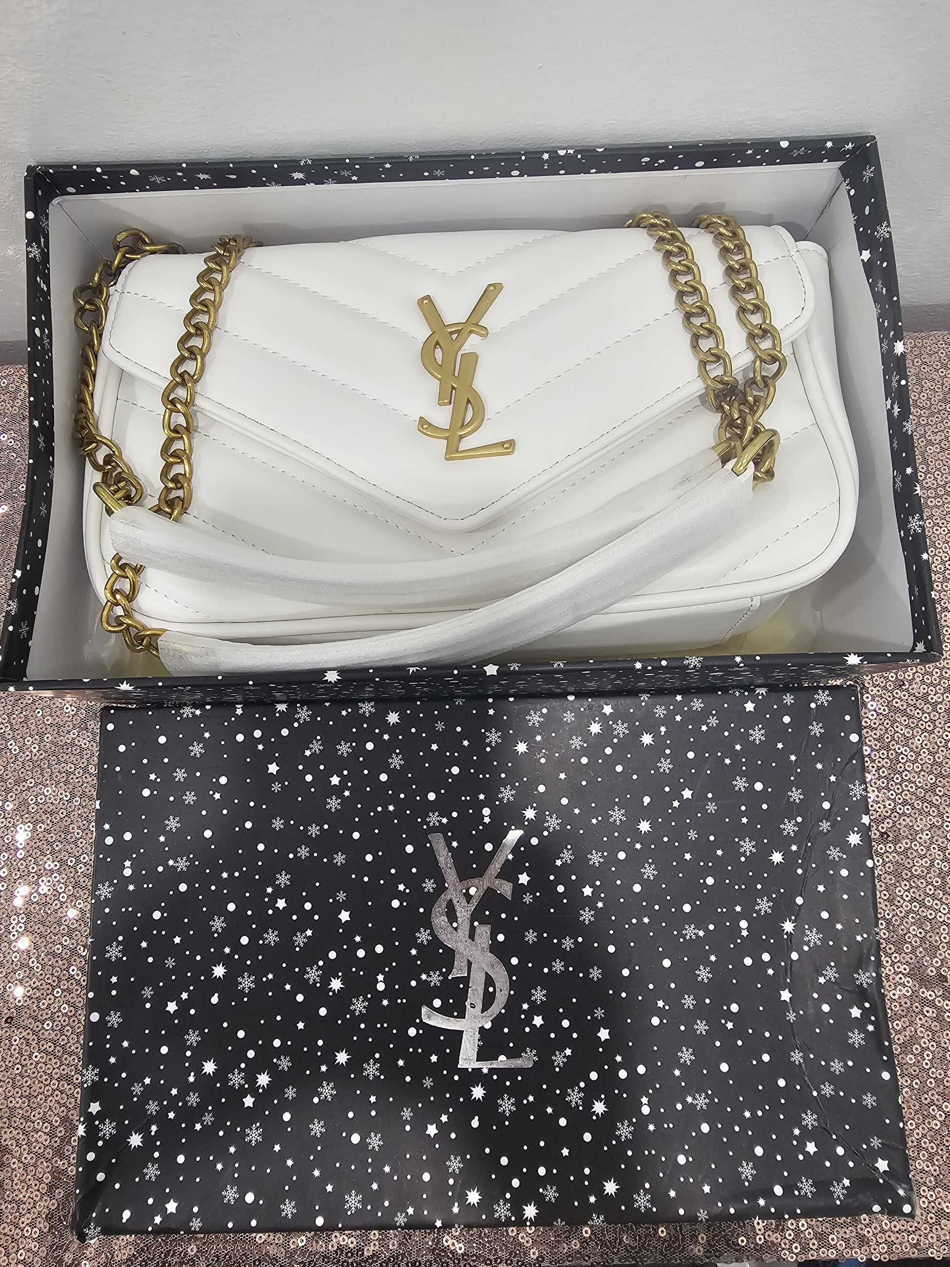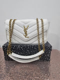 This elegant shoulder bag is inspired by the acclaimed Saint Laurent Loulou Small Shoulder Bag. It features a beautifully soft and structured design with the signature chevron-style quilting on the exterior, often referred to as 'matelassé.'